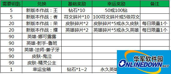 王者荣耀钥匙兑换推荐: