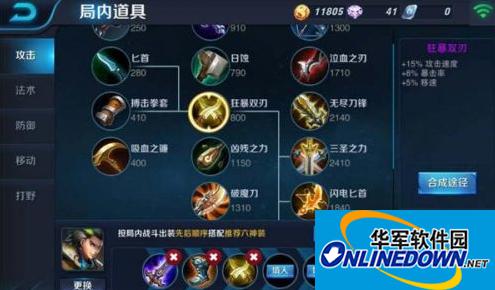 1.前期首先带一把铁剑出门,然后出匕首,为出破灭君主做准备,出完破灭君主,开始准备出狂暴双刃,最后是出一件急速战靴,让狄仁杰可以更好的边跑边打。