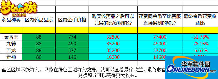 接下来我们只需要计算花费金币跟获得积分的比值就可以知道花费金币的收益是否超过该药品的价值!