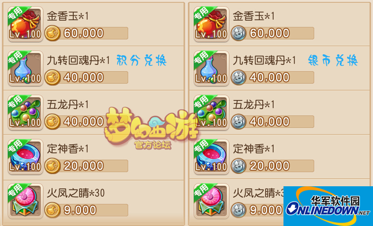 2、专用九转回魂丹每1点品质价值4金币