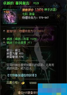 装备:防具 +S-S最佳属性,武器 卓越一击 7速最佳属性,其次为2% 7速。