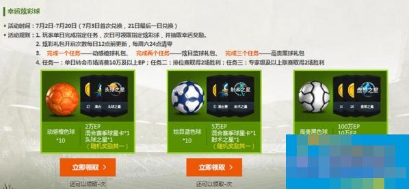 1. 玩家单日完成指定任务,次日可领取指定炫彩球,并抽取幸运奖励。