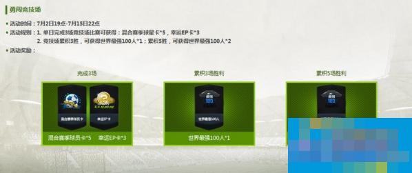 1. 单日完成3场竞技场比赛可获得:混合赛季球星卡*5,幸运EP卡*3