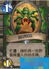 你的卡组中有23张结网蛛以及7张随机职业法术,换言之能够获得什么野兽随从纯粹看发牌员的心情。需要注意的是:猎人的职业法术动物伙伴的雷欧克、米莎、霍弗以及德鲁伊变形的野兽是不会从结网蛛的亡语效果获得的。然而小德的职业橙玛洛恩也属于野兽,可以由此效果获得。