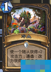 盗贼的职业技能补刀能力比德鲁伊更强,而盗贼拥有很多适合本周乱斗模式的法术卡。消失可以归入神卡行列,你可以利用消失使对手的高费随从返手,从而拖延一到两个回合,理想情况之下(该模式大量的结网蛛以及野兽会使大家疯狂铺场)还可以爆掉对手的随从或者手牌。背叛是一张出其不意的卡,在天梯筑构中基本上没人会加入这张卡,因而一般玩家都不会对背叛作出防备,因而这个随机获得的法术往往会有奇效。冷血这张1费的Buff卡在满手结网蛛的情况下基本上100%可以打出连击效果,+4攻的buff解场或者打脸都非常不错。
